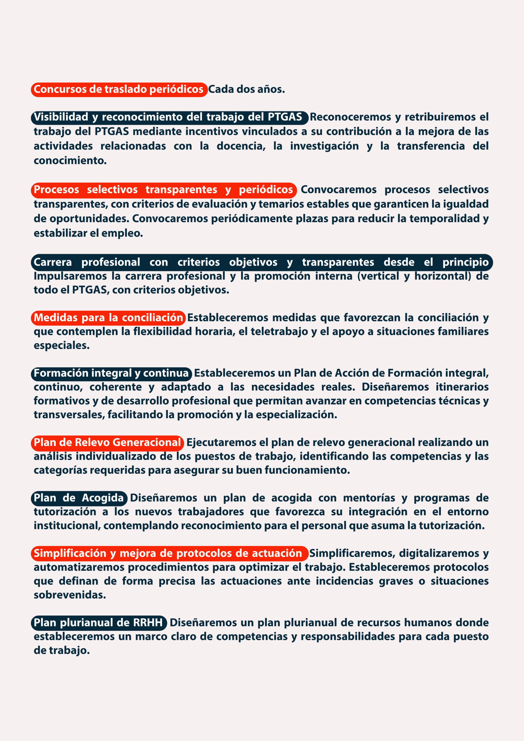 Quiero dar las gracias, de corazón, a todas las personas que han contribuido a construir este proyecto. Gracias al estudiantado, al PDI y al PTGAS que han compartido sus ideas, inquietudes, propuestas y expectativas en las reuniones mantenidas en centros, servicios y campus. Gracias también a todas las personas que, desde la cercanía, la generosidad y el compromiso, han enriquecido este proyecto con su experiencia y su confianza. Porque la Universidad de Murcia que queremos no se construye desde la distancia, sino entre todos y todas, con diálogo, con compromiso y con una voluntad real de avanzar.